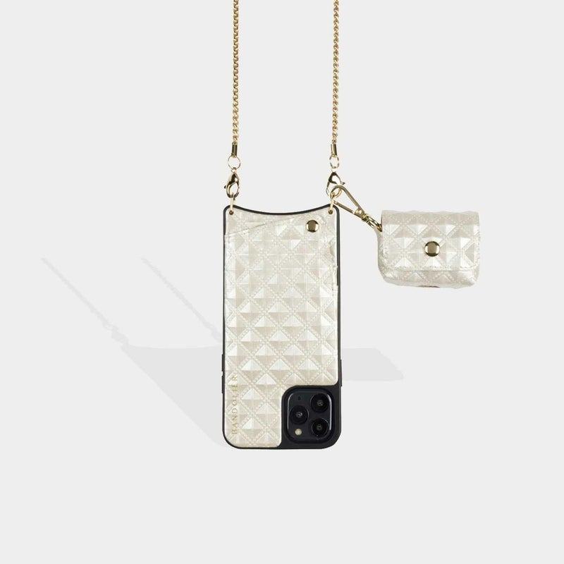 クリームカラーのピラミッドスタッズがファッションのワンポイントに。同色のケースと組み合わせたカスタマイズもオススメ。
