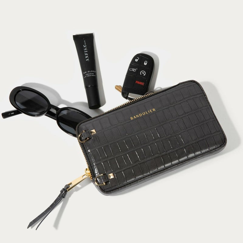EXPANDED GRAY CROC POUCH