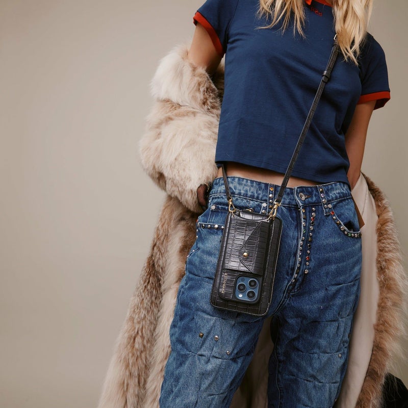 携帯を無くさず、落とさず、ファッショナブルに。どんな服装の日でもスマートフォンを肌身離さず持ち歩くことができます。