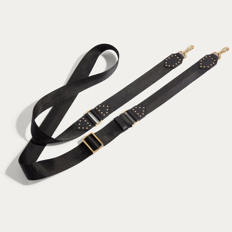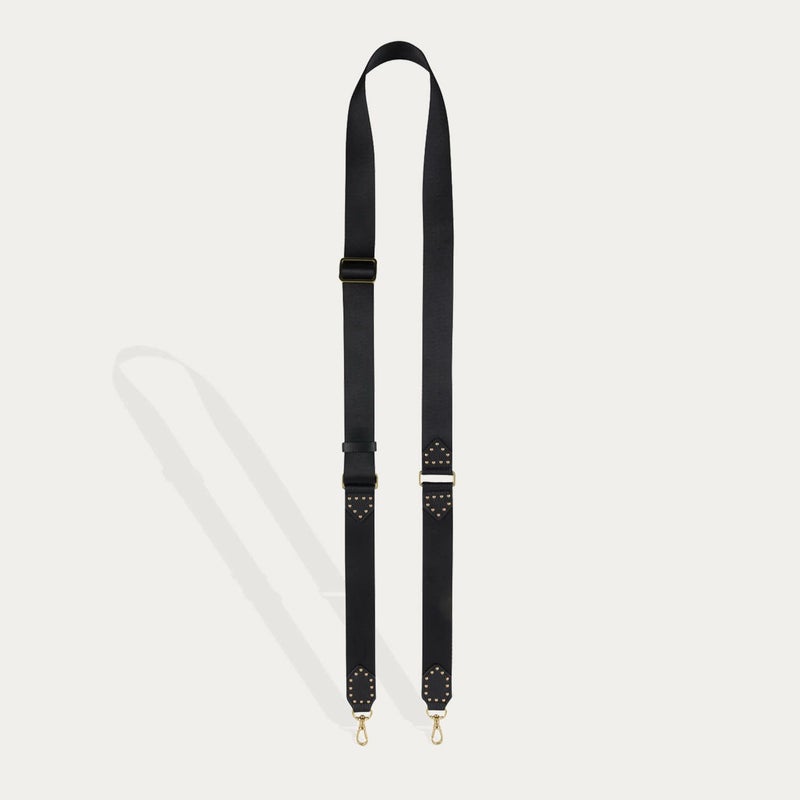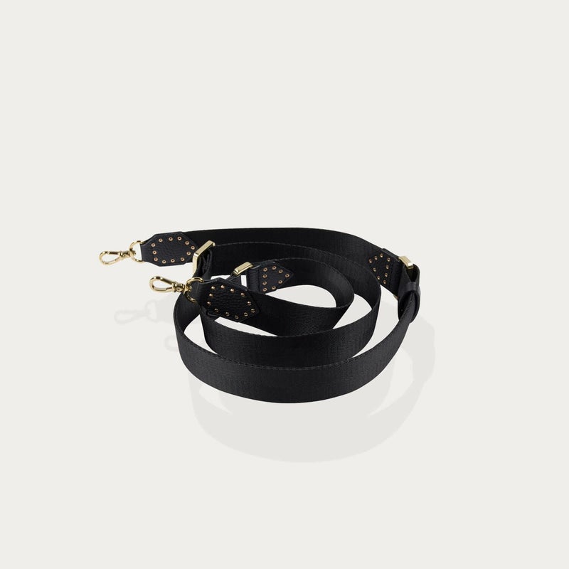 ブラックレザーのゴールドスタッズがシックな雰囲気を作りつつ、ナイロンの組み合わせでカジュアルな印象に。どんなケースとも組み合わせ頂けるストラップが新登場です。※モデル着用画像は一例です。※個体ごとに若干の誤差がある場合がございます。商品の画像は、できるだけ近いカラーにて、掲載をしております。※お客様のモニターの設定により、色味に違いが発生してしまう場合もございます。