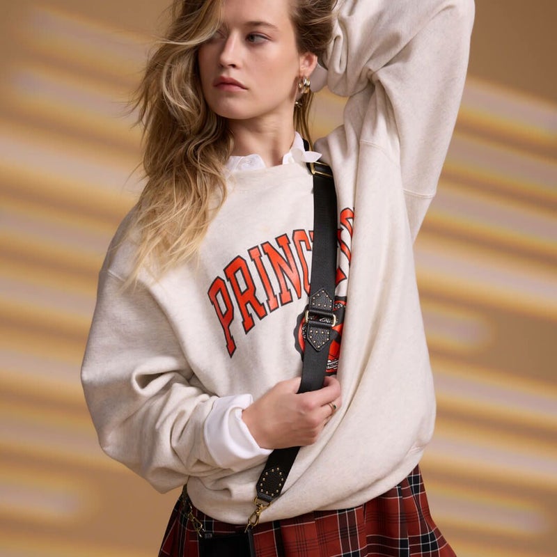 レザー部分のゴールドスタッズがアクセントに