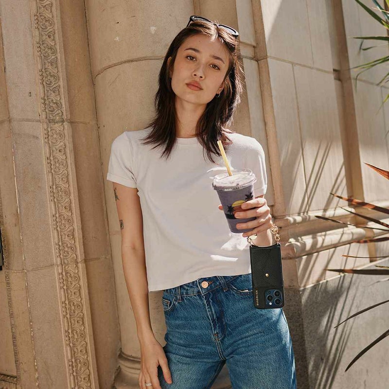 お好きなケースと自由に組み合わせ可能な短いストラップ。
