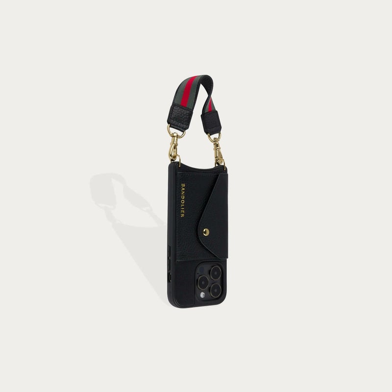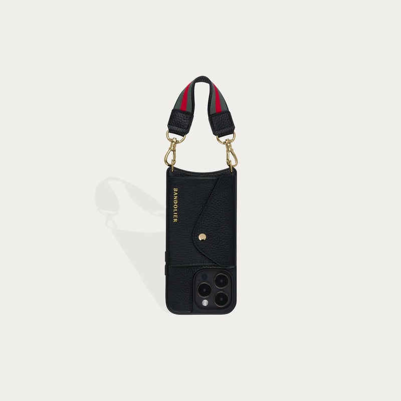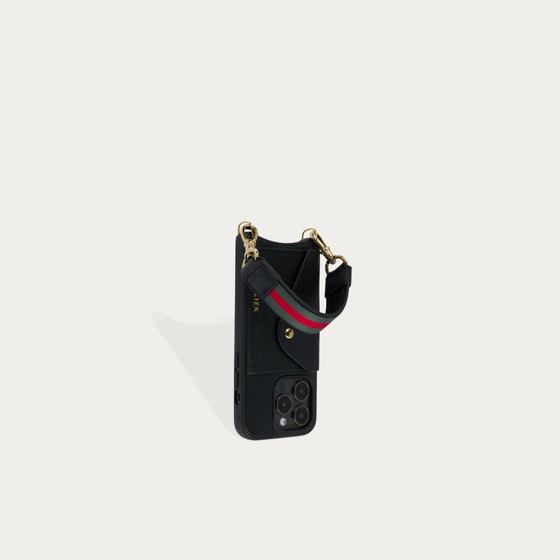 ブラックにレッドラインとゴールド金具がアクセントとになった同色のケースも発売中の人気のデザイン。