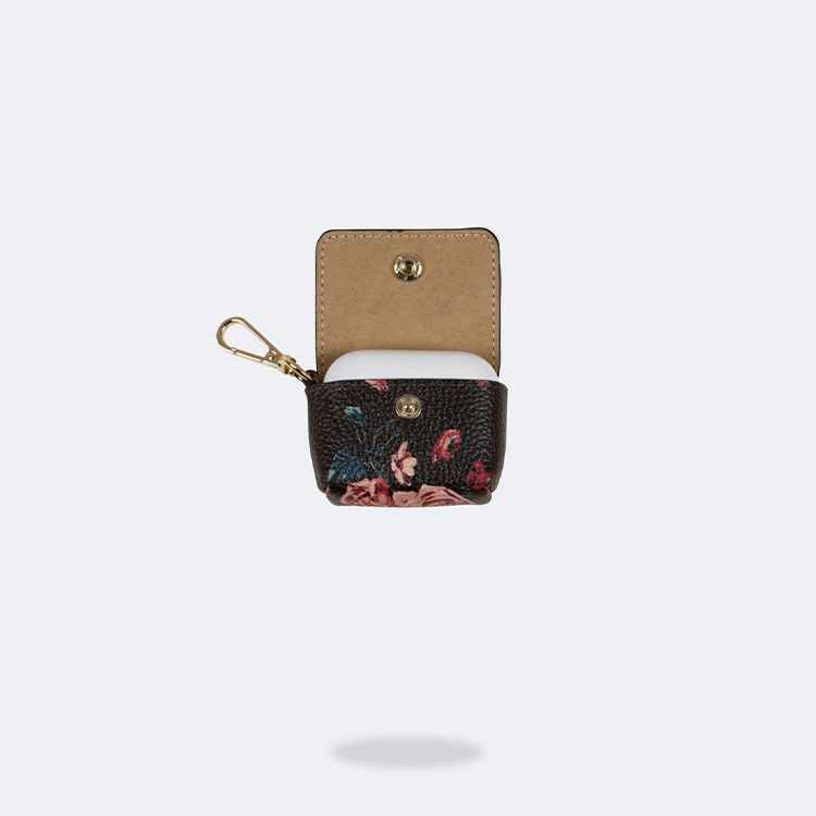 こちらはブラックフローラルのケースにゴールドの金具を組み合わせています。