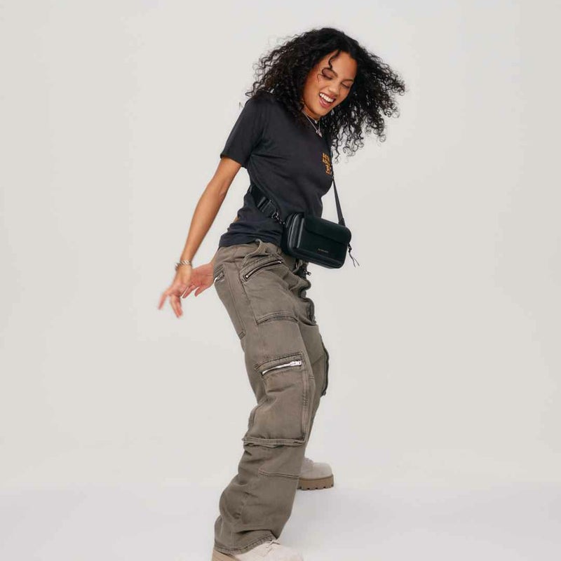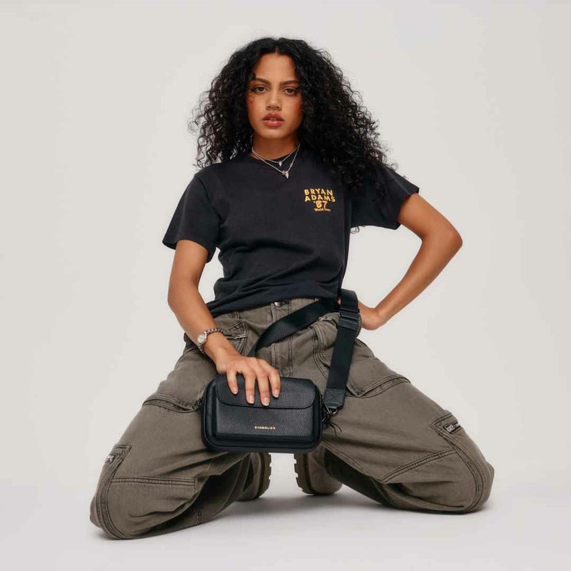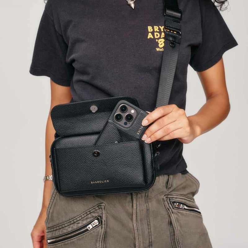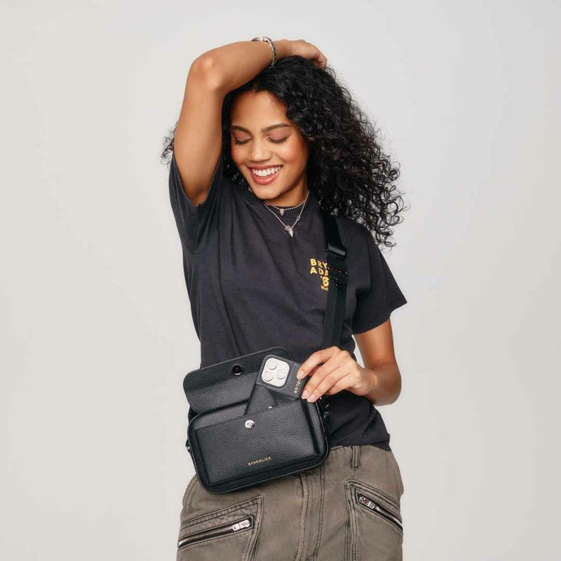 長方形のシルエット、丸い角、外側のスリップポケットは細部までこだわり抜いたデザイン。ストラップは他のBANDOLIERストラップも取り付け可能で、自分だけのオリジナルスタイルを作ることもできます。