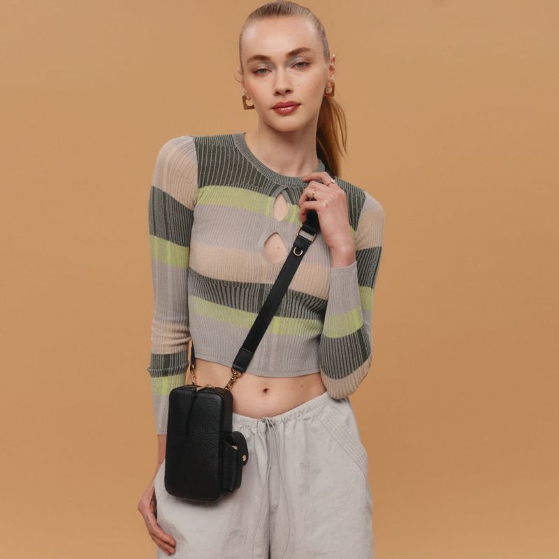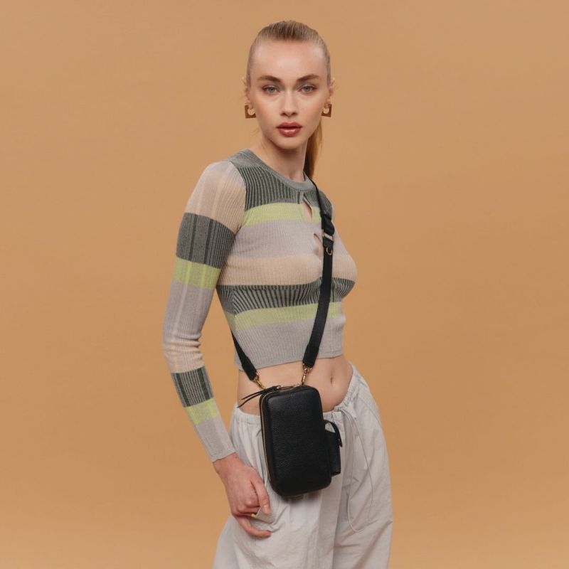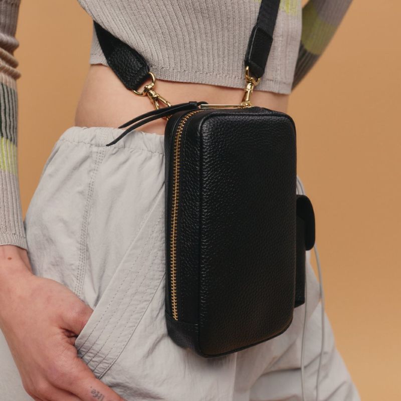 ブラックレザーとゴールドの金具の組み合わせが上品さもプラス。