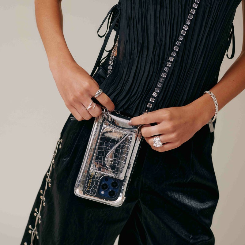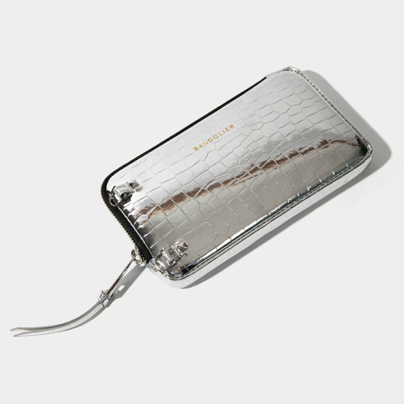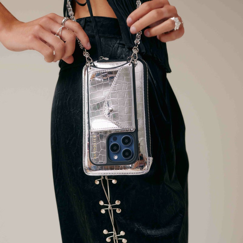 機能性にもデザイン性にもこだわったBANDOLIERオリジナルのポーチ。必需品がたっぷりと入るように考え抜かれたデザイン。普段のお出かけにも旅行にもお使い頂ける収納力。様々なケースと合わせてお使い頂けます。宝石のクリスタルのように輝きを放つキラキラとした光沢感のあるポーチ。