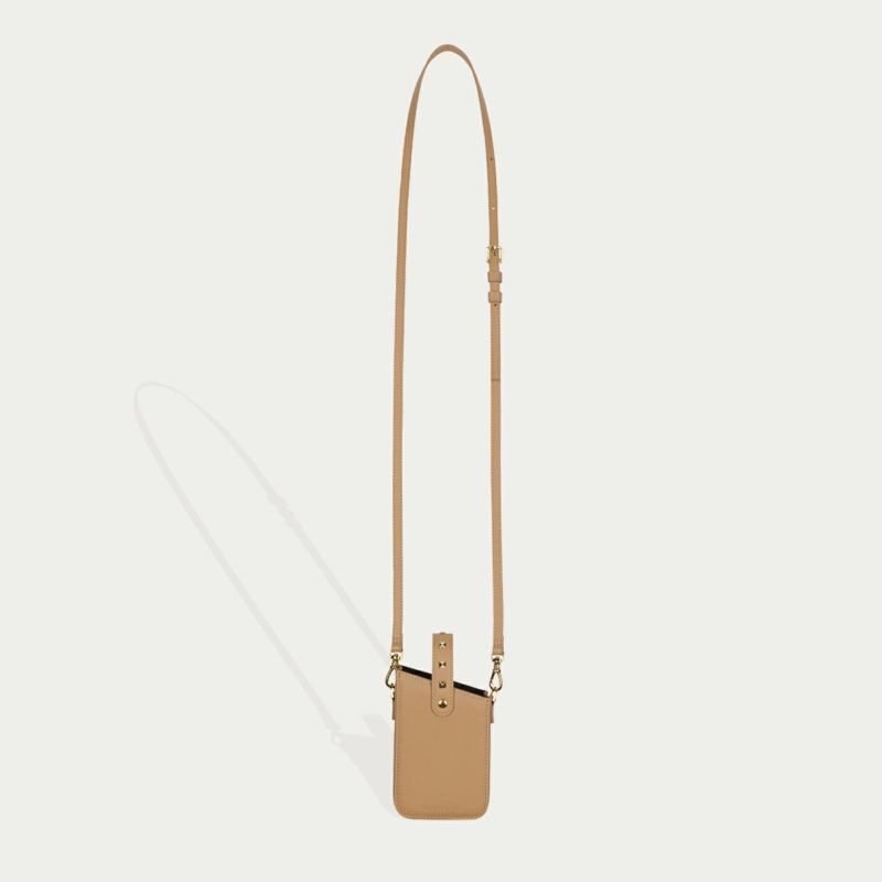iPhoneのサイズを選ばない、便利なマチ付きフォンポーチ(タン)