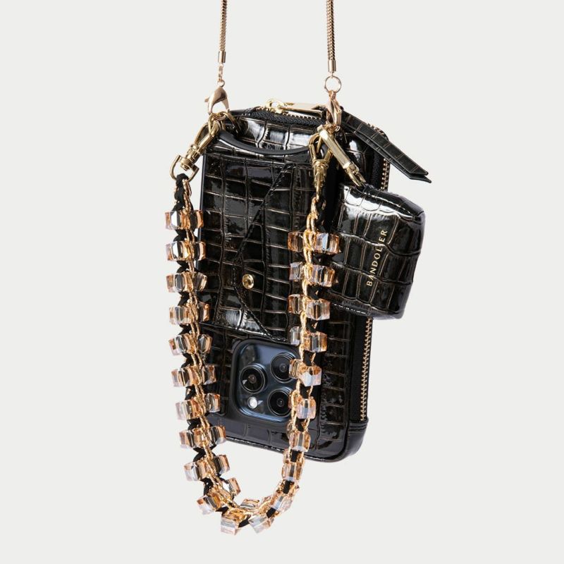 タイムレスな輝きを放つクロコダイル調の合成皮革を使用。同色のケースと組み合わせたカスタマイズもオススメ。※モデル着用画像は一例です。※個体ごとに若干の誤差がある場合がございます。商品の画像は、できるだけ近いカラーにて、掲載をしております。※お客様のモニターの設定により、色味に違いが発生してしまう場合もございます。