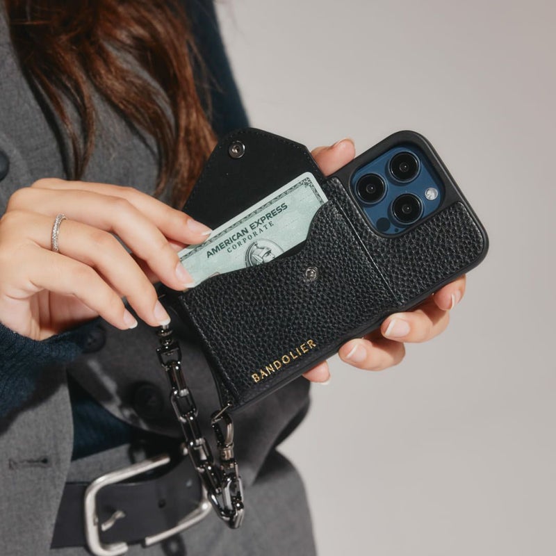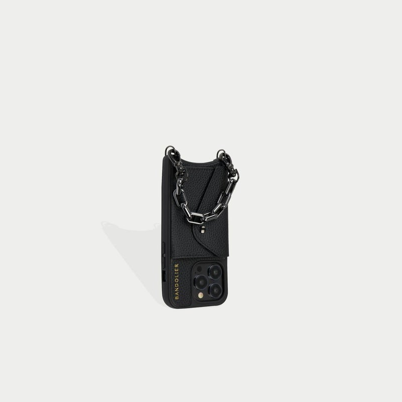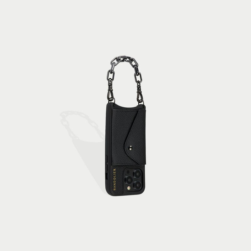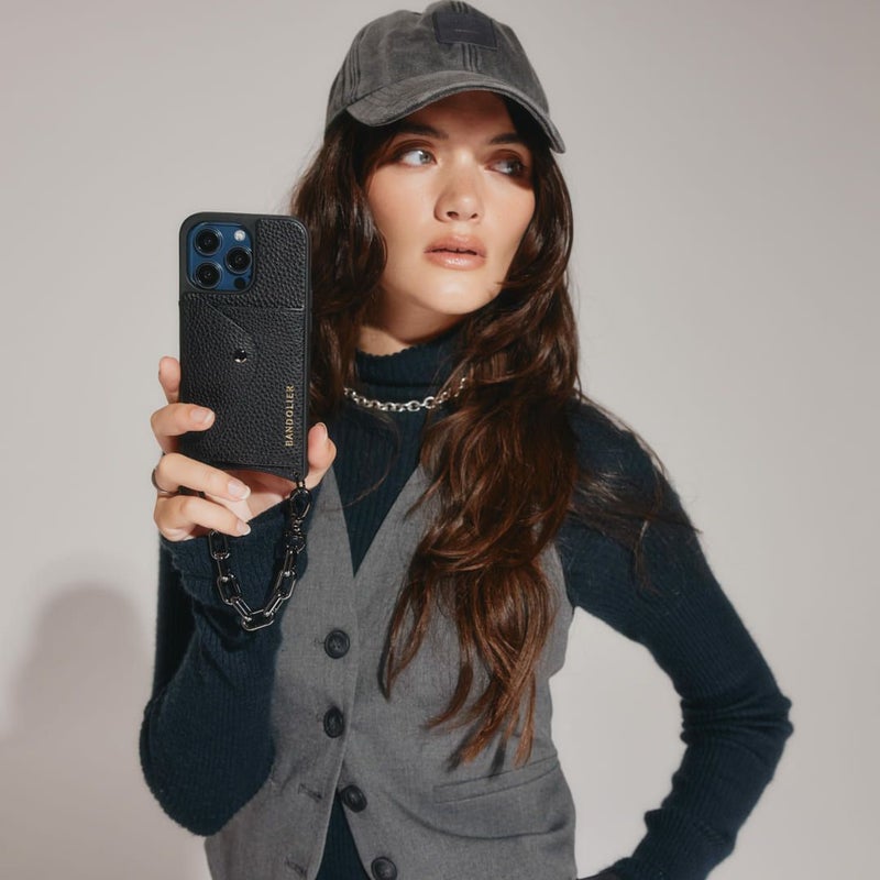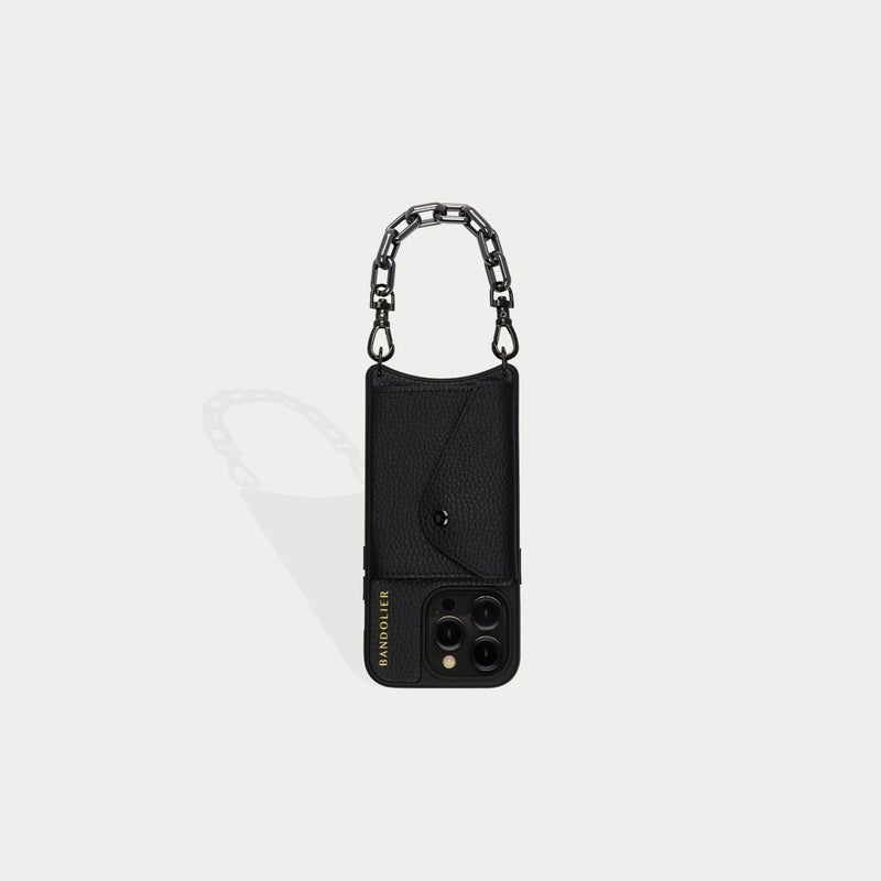 ファッションのワンポイントになるブラックチェーンストラップ。ブレスレット感覚でiPhoneを身軽に持ち運ぶことができます。お好きなBANDOLIERケースやポーチとのカスタマイズをお楽しみください。※こちらはストラップのみの販売です。