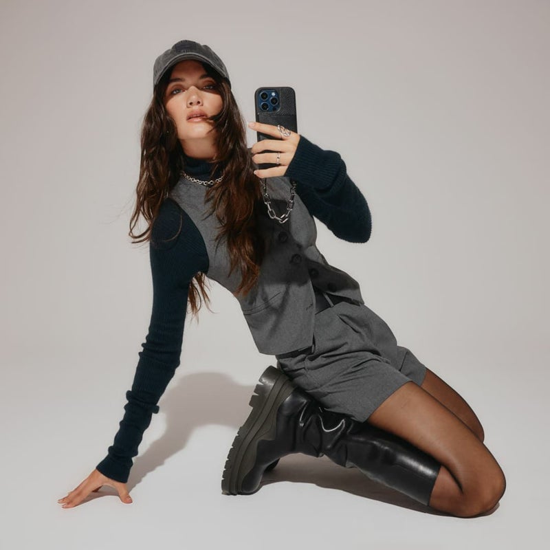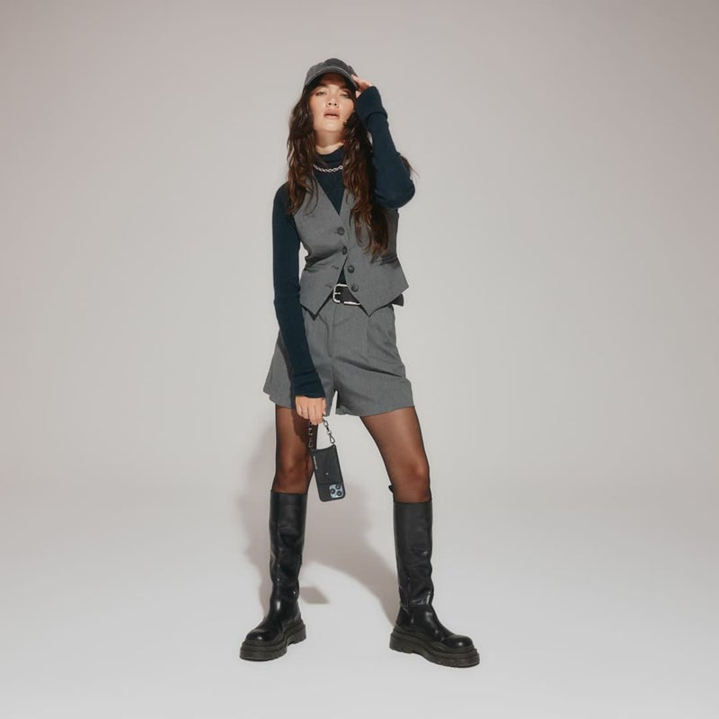 太めのブラックチェーンがファッションにエッジをプラス。