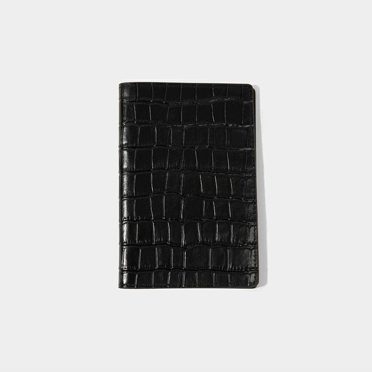 クロコダイルの型押しを施したレザーを表に、内側は滑らかな手触りが特徴のスムースレザーを使用したパスポートホルダー。大切なパスポートをしっかり保護できるよう考え抜かれたデザイン。