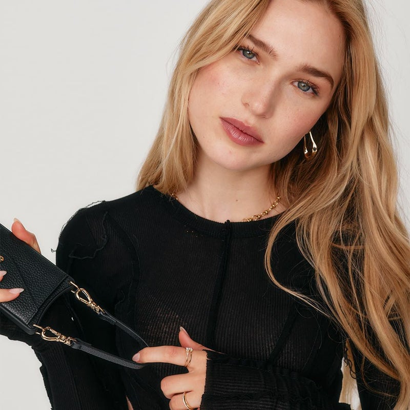 お好きなケースと自由に組み合わせ可能な短いストラップ(ブラック/ゴールド)
