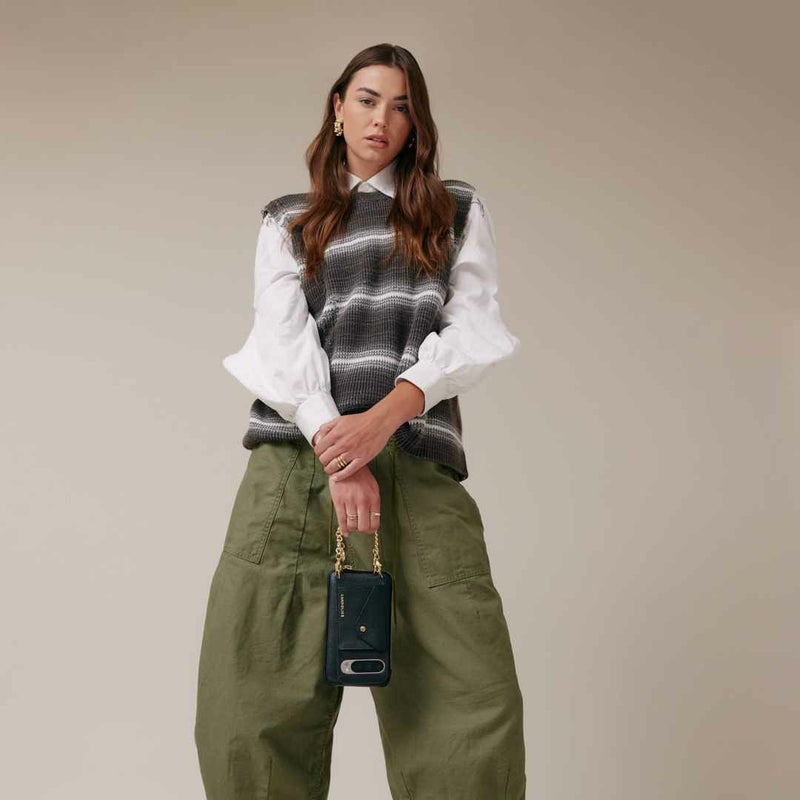 携帯を無くさず、落とさず、ファッショナブルに。どんな服装の日でもスマートフォンを肌身離さず持ち歩くことができます。