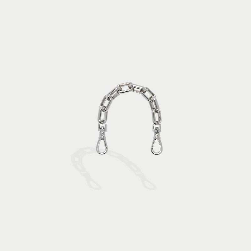 ファッションのワンポイントになるシルバーチェーンストラップ。ブレスレット感覚でiPhoneを身軽に持ち運ぶことができます。お好きなBANDOLIERケースやポーチとのカスタマイズをお楽しみください。※こちらはストラップのみの販売です。