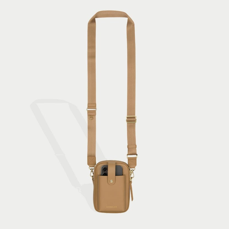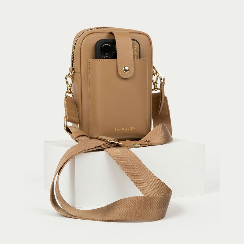 スマートフォンを収納するスリップポケットが付いたBANDOLIERオリジナルバッグ