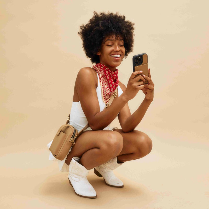携帯を無くさず、落とさず、ファッショナブルに。どんな服装の日でもスマートフォンを肌身離さず持ち歩くことができます。