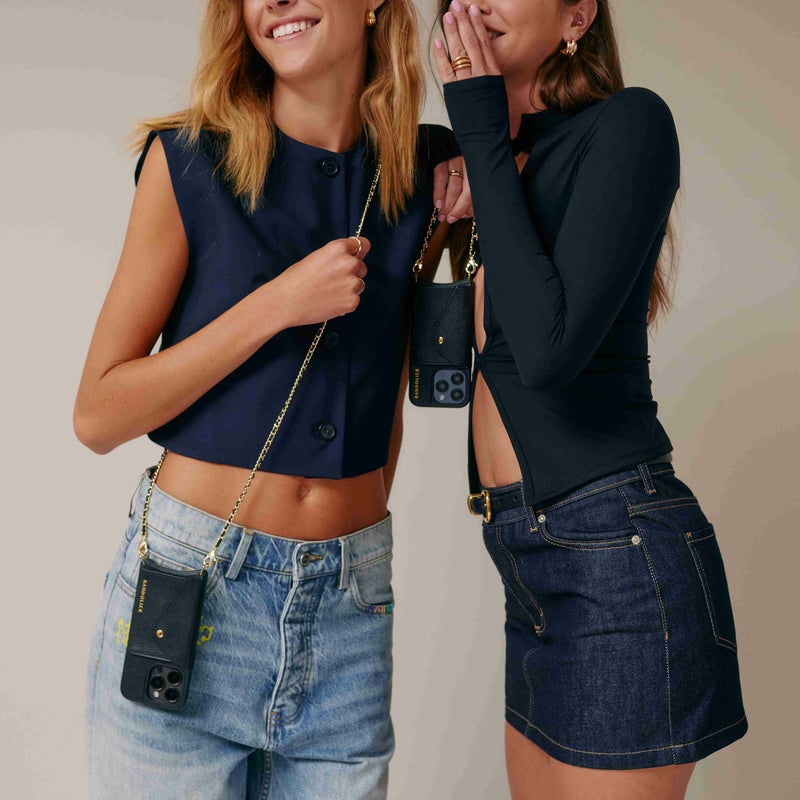 携帯を無くさず、落とさず、ファッショナブルに。どんな服装の日でもスマートフォンを肌身離さず持ち歩くことができます。