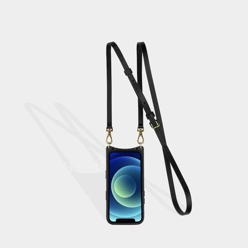 長さ調整可能なシンプルデザインのエマスタイルです。 どんなファッションにも合わせやすいベーシックレザーストラップです。 携帯を無くさず、落とさず、ファッショナブルにどんな服装の日でもスマートフォンを肌身離さず持ち歩くことができます。 肩から斜めがけができ両手が空くので、荷物の多いときや旅行にもおすすめです。 こちらはブラックのケースにゴールドの金具を組み合わせています。