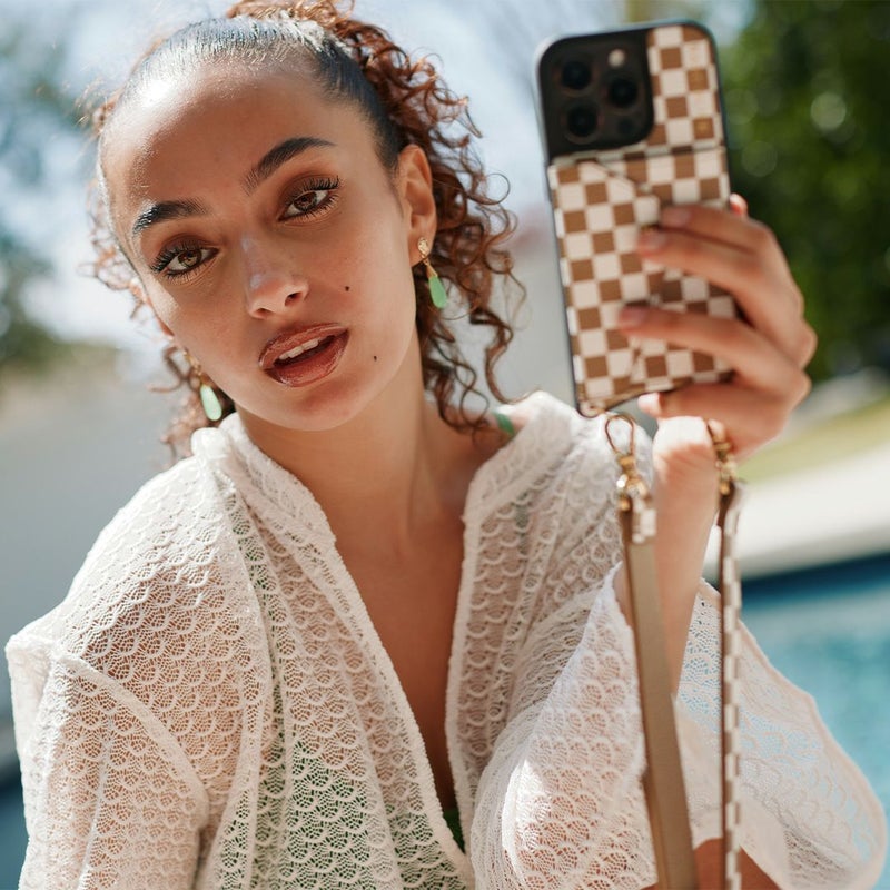 携帯を無くさず、落とさず、ファッショナブルに。どんな服装の日でもスマートフォンを肌身離さず持ち歩くことができます。