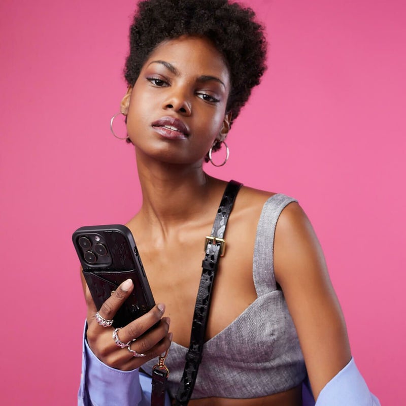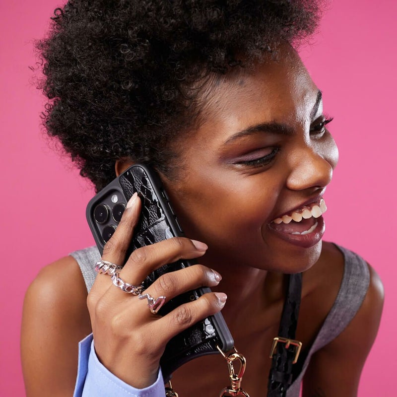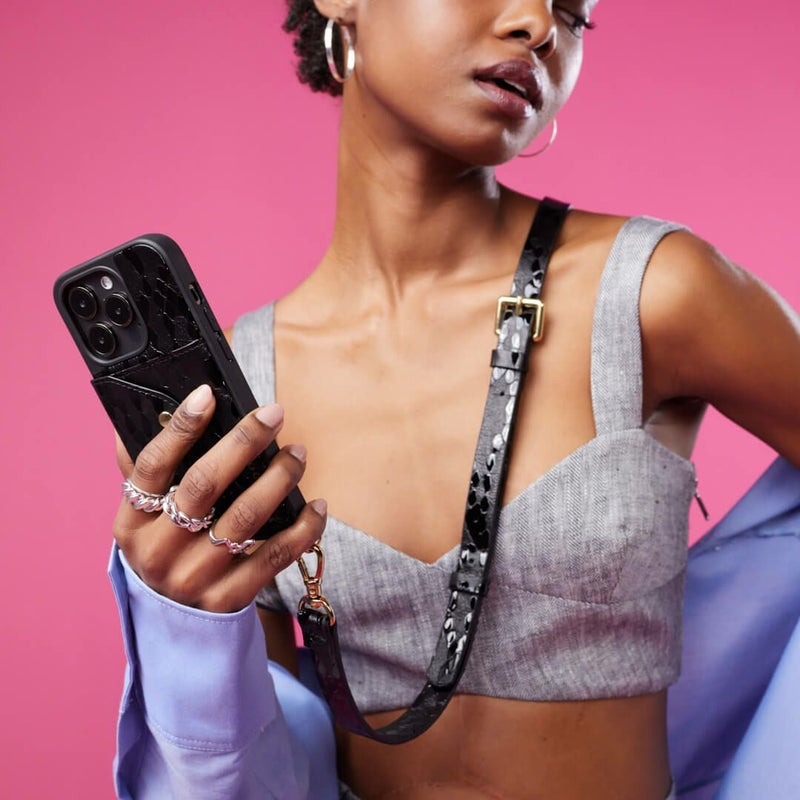 携帯を無くさず、落とさず、ファッショナブルに。どんな服装の日でもスマートフォンを肌身離さず持ち歩くことができます。