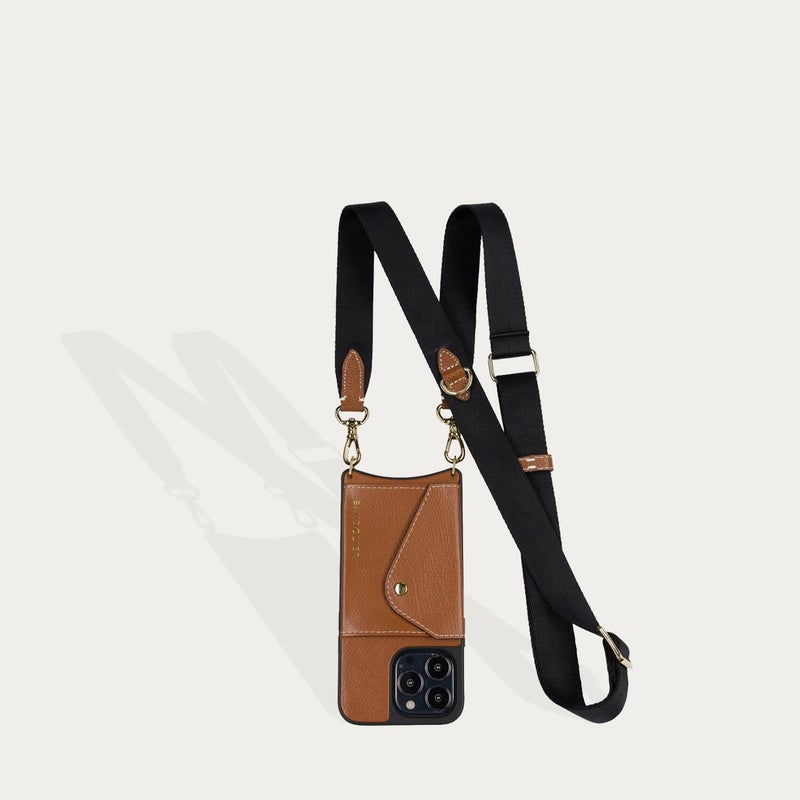 手にほどよくフィットするiPhoneケースと、肩から斜めがけが出来るストラップを合わせた革新的なデザインです。