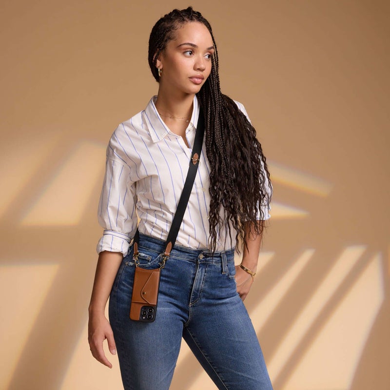 クラシックなBANDOLIERをリデザイン。シエンナカラーのレザーとナイロンストラップの組み合わせで、カジュアルでフレッシュな印象を演出します。