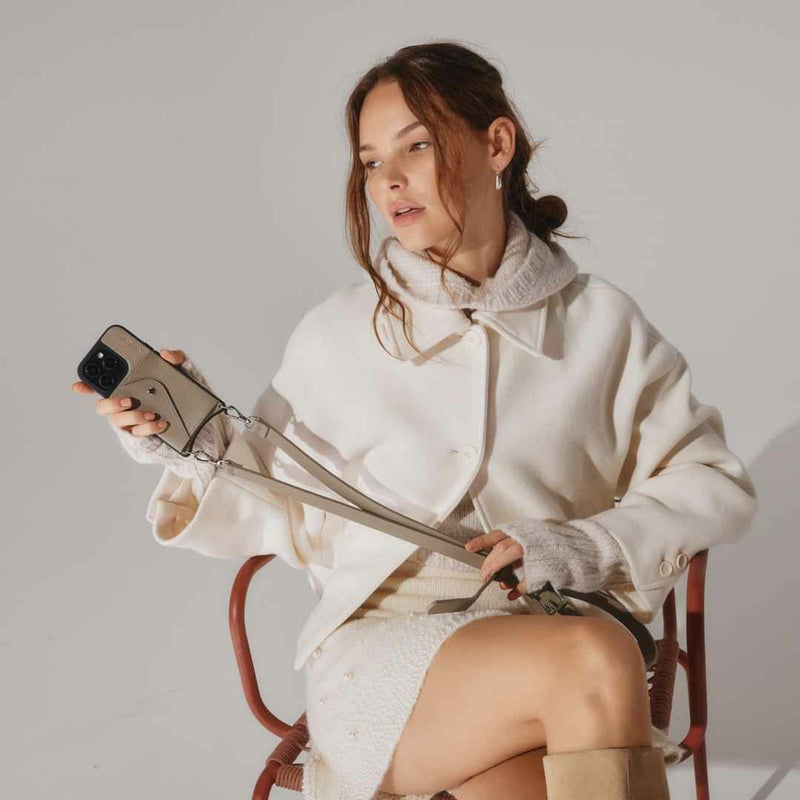 携帯を無くさず、落とさず、ファッショナブルに。どんな服装の日でもスマートフォンを肌身離さず持ち歩くことができます。