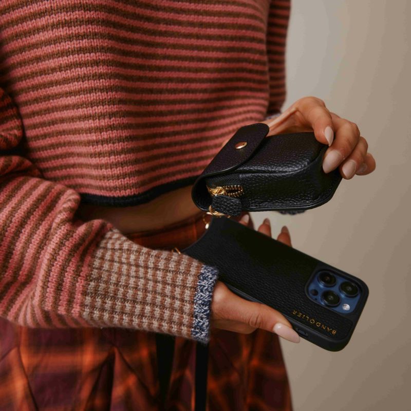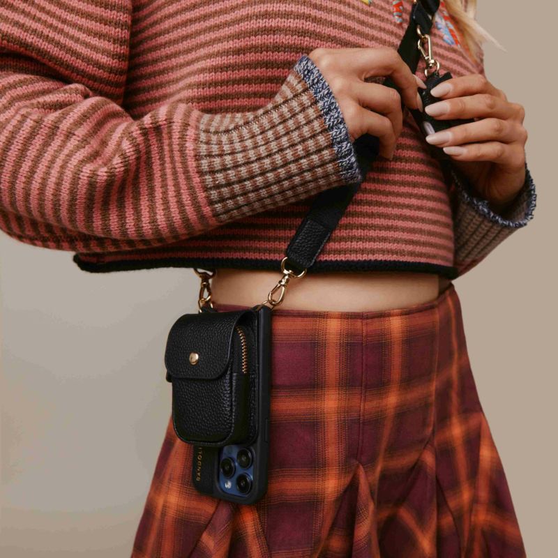 携帯を無くさず、落とさず、ファッショナブルに。どんな服装の日でもスマートフォンを肌身離さず持ち歩くことができます。