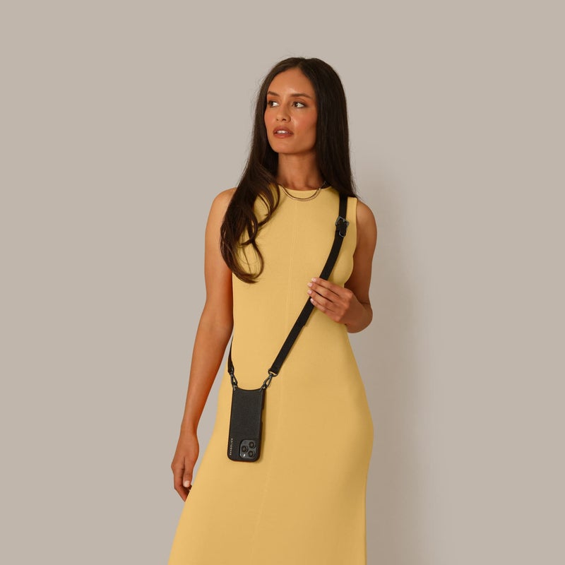 携帯を無くさず、落とさず、ファッショナブルに。どんな服装の日でもスマートフォンを肌身離さず持ち歩くことができます。