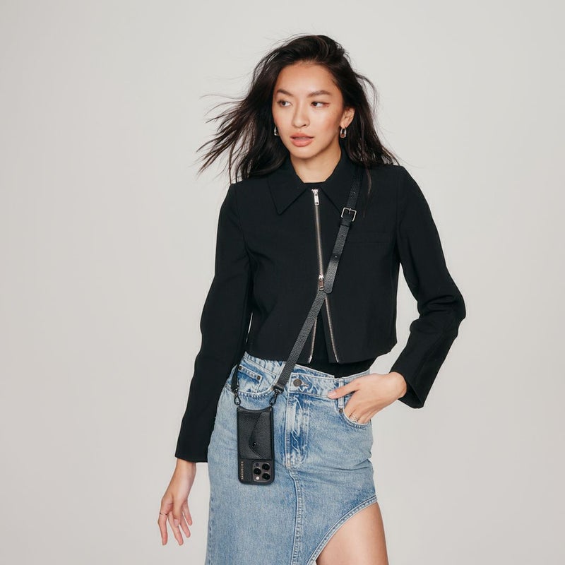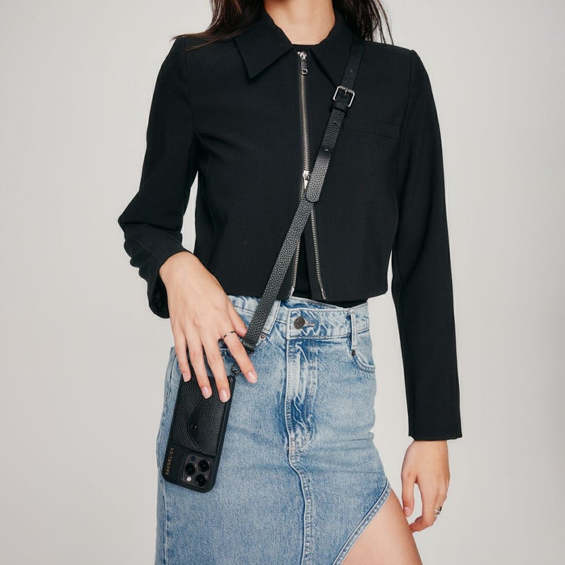 携帯を無くさず、落とさず、ファッショナブルに。どんな服装の日でもスマートフォンを肌身離さず持ち歩くことができます。