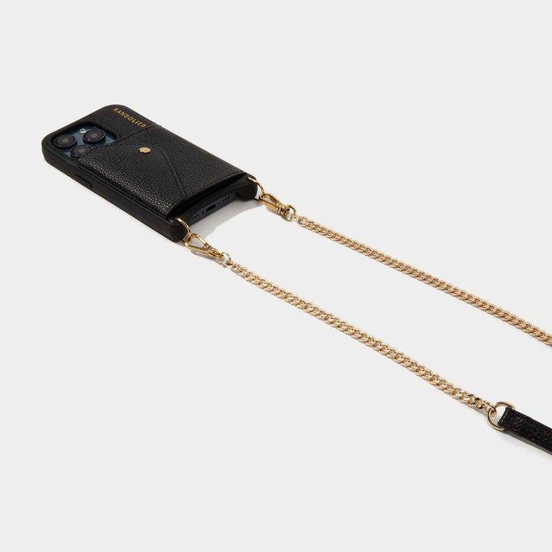レザーとチェーンを組み合わせたストラップスタイル。ゴールド金具とチェーンがシックなスタイルに高級感を演出します。