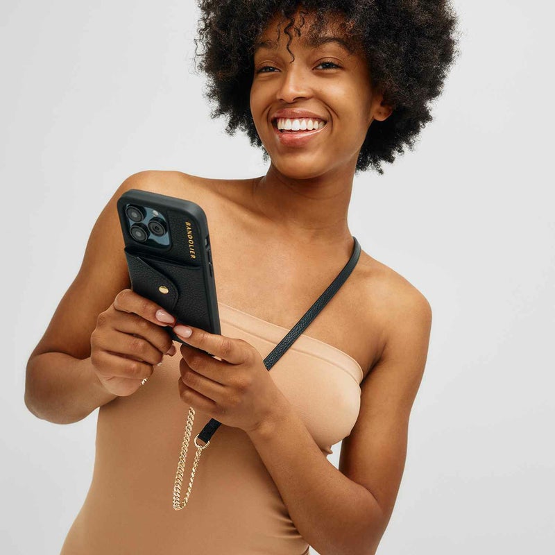 携帯を無くさず、落とさず、ファッショナブルに。どんな服装の日でもスマートフォンを肌身離さず持ち歩くことができます。