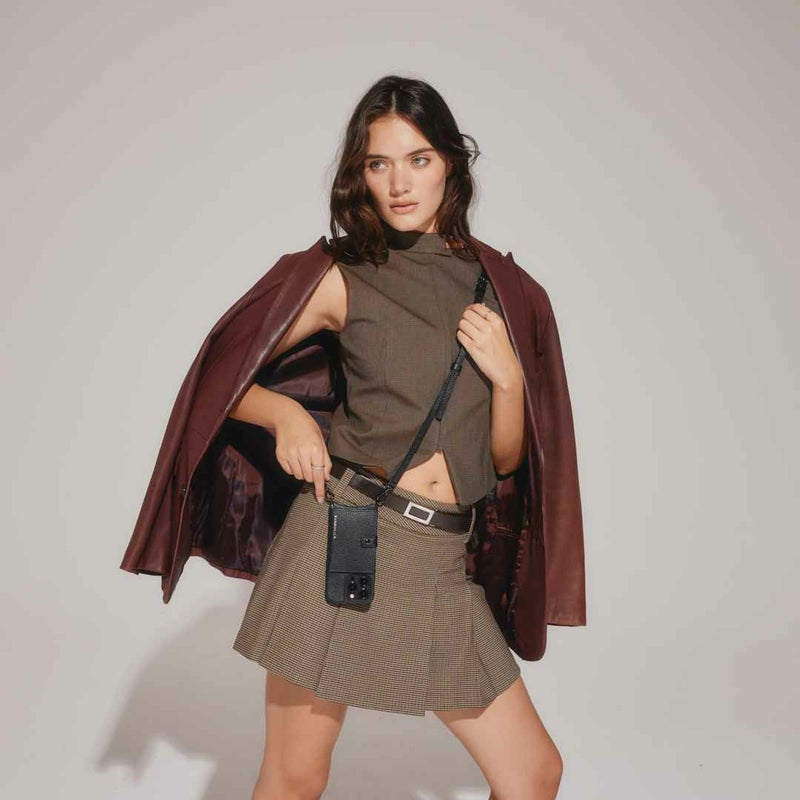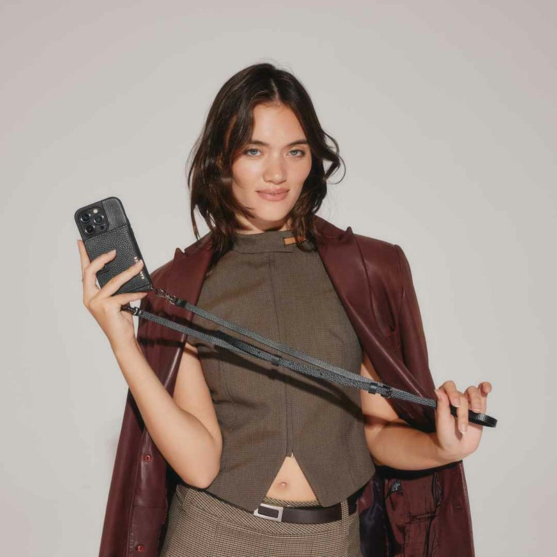 携帯を無くさず、落とさず、ファッショナブルに。どんな服装の日でもスマートフォンを肌身離さず持ち歩くことができます。