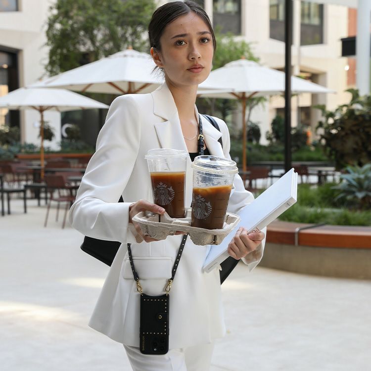 携帯を無くさず、落とさず、ファッショナブルに。どんな服装の日でもスマートフォンを肌身離さず持ち歩くことができます。