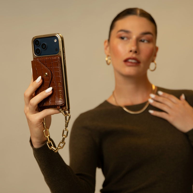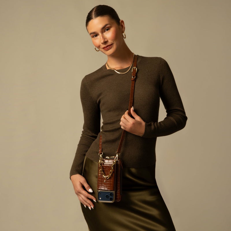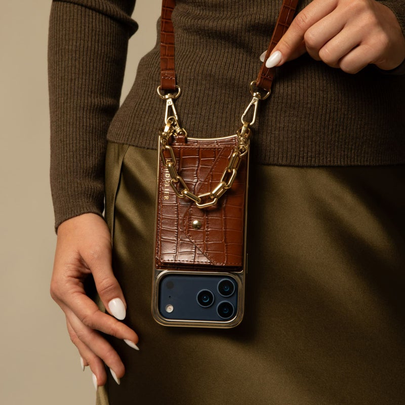携帯を無くさず、落とさず、ファッショナブルに。どんな服装の日でもスマートフォンを肌身離さず持ち歩くことができます。