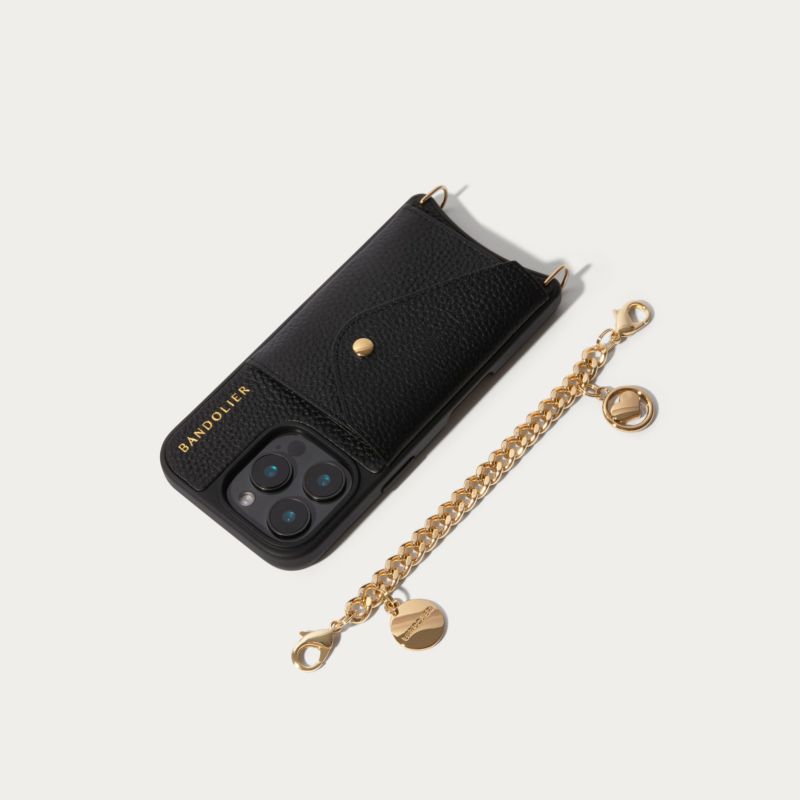 厚みのあるチェーンのリストレットと繊細なチャームがセットされた、100%本革製のウォッチレットフォンケース。内側にはソフトなマイクロファイバーライニングと高めのベゼルを採用し、スマホをしっかり保護しつつスリムな見た目を実現。ストラップは着脱も可能です。