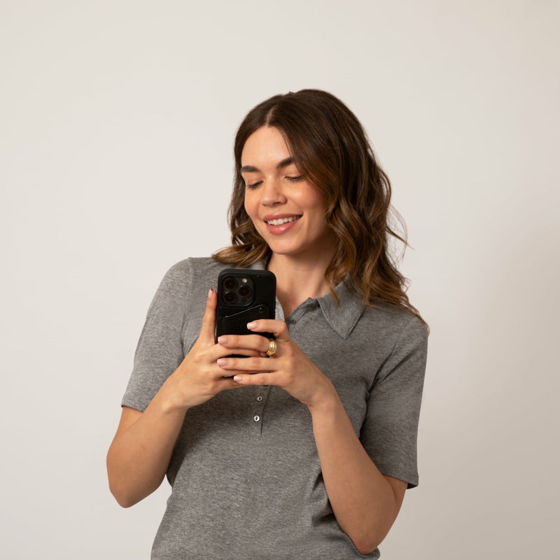 携帯を無くさず、落とさず、ファッショナブルに。どんな服装の日でもスマートフォンを肌身離さず持ち歩くことができます。