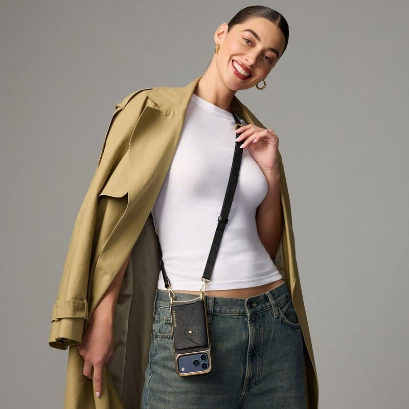 携帯を無くさず、落とさず、ファッショナブルに。どんな服装の日でもスマートフォンを肌身離さず持ち歩くことができます。