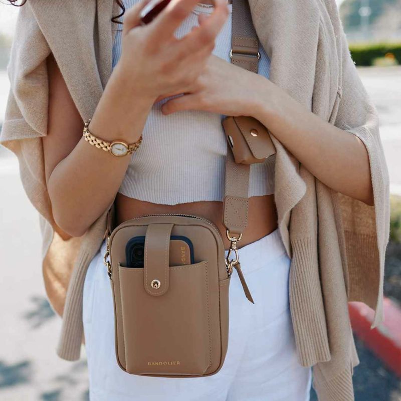 スマートフォンを収納するスリップポケットが付いたBANDOLIERオリジナルバッグ