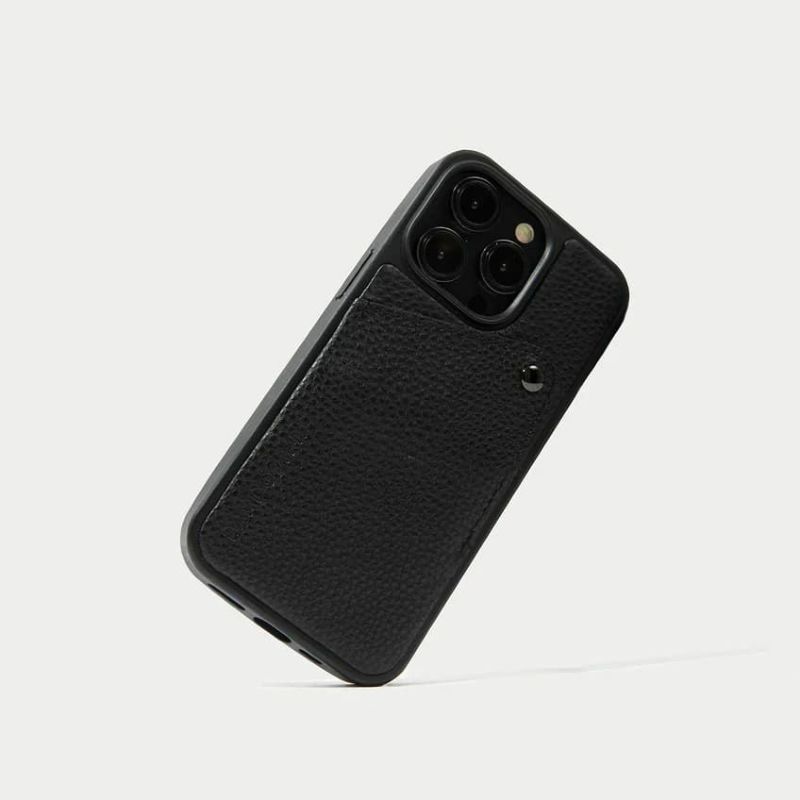 無地でシンプルなブラックレザーが洗練された印象を演出。