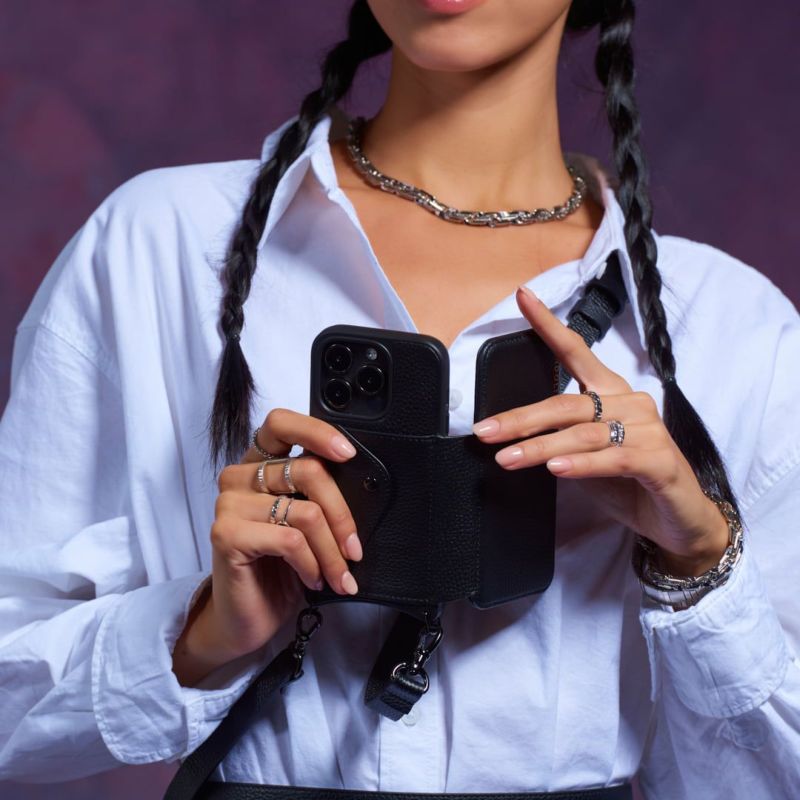 携帯を無くさず、落とさず、ファッショナブルに。どんな服装の日でもスマートフォンを肌身離さず持ち歩くことができます。