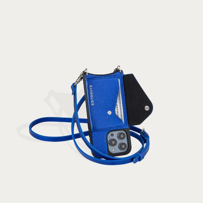 こちらはメタリックブルーのケースにシルバーの金具を組み合わせています。
