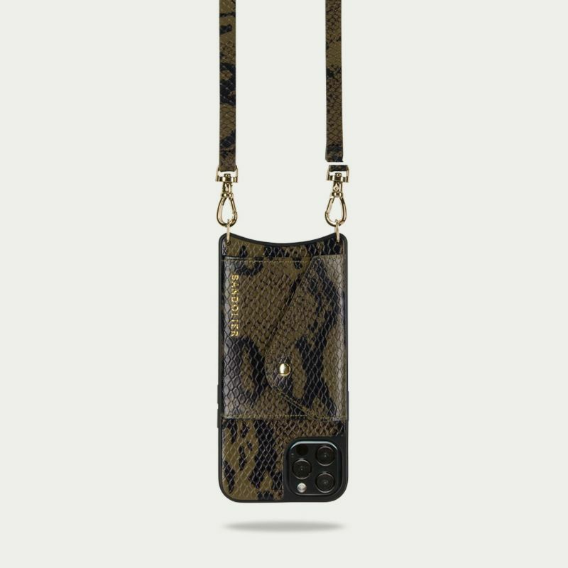 こちらはブラウンスネークのケースにゴールドの金具を組み合わせています。