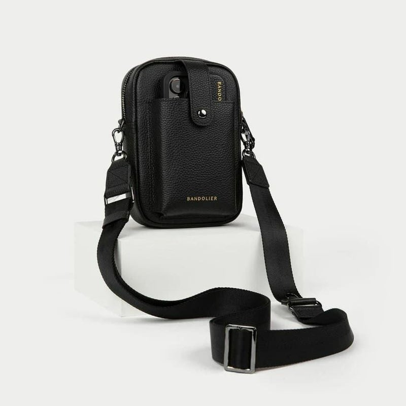 スマートフォンを収納するスリップポケットが付いたBANDOLIERオリジナルバッグ